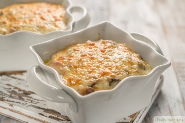 шампиньоны, сливки 30% жирности, бекон, сыр almette сливочный, лук репчатый, сыр пармезан, масло топленое, соль поваренная пищевая, перец черный молотый
