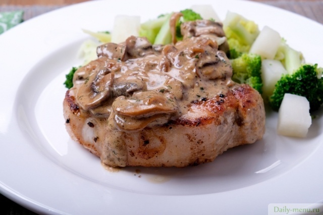Свиные отбивные под грибным соусом
