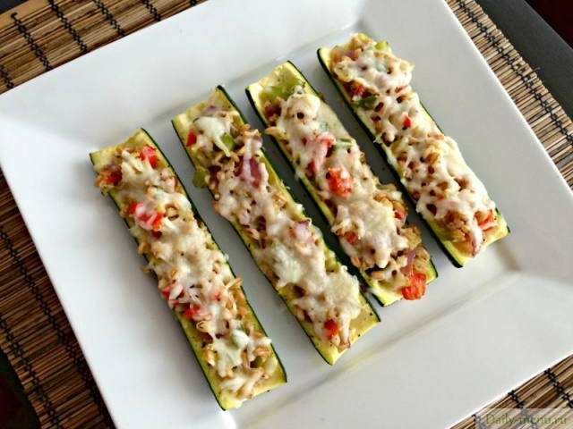 кабачок, куриная грудка, без кожи, сыр мягкий (моцарелла), помидоры, томатная паста, масло оливковое, чеснок, укроп и другие пряные травы, соль поваренная пищевая