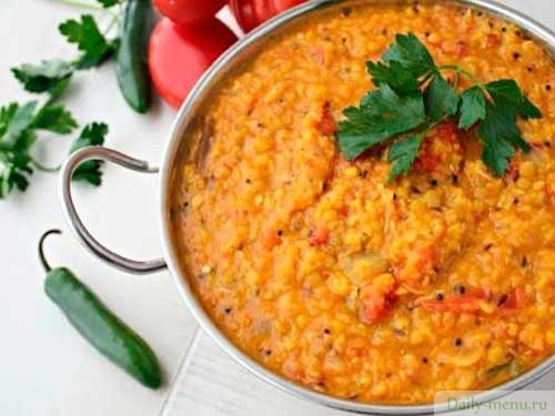 Красная чечевица с томатом, чесноком и зеленью