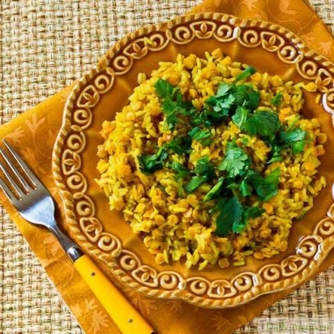 рис бурый, чечевица красная, рис длиннозёрный, топленое масло гхи, соль поваренная пищевая, зира (кумин), черный тмин, гвоздика, карри, кардамон, лавровый лист, перец душистый