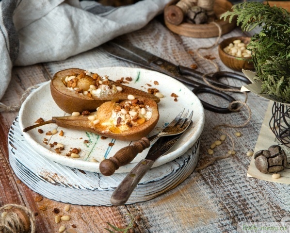 груша, сыр рикотта, мед натуральный (мёд), орех грецкий, масло сливочное 72%, корица