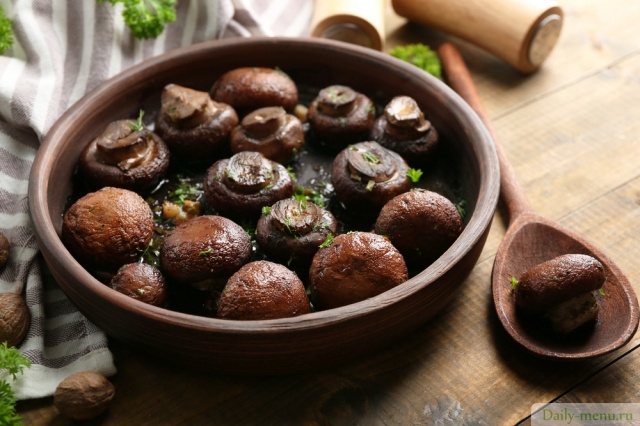 шампиньоны, масло оливковое, соевый соус, бальзамический уксус, чеснок, прованские травы