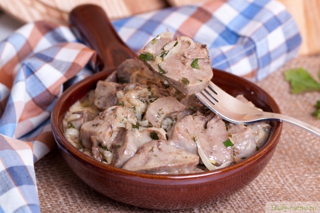 Язык в сметане с грибами