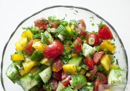 капуста пекинская, огурец грунтовый, томат грунтовый, перец болгарский зеленый, масло оливковое, соль поваренная пищевая