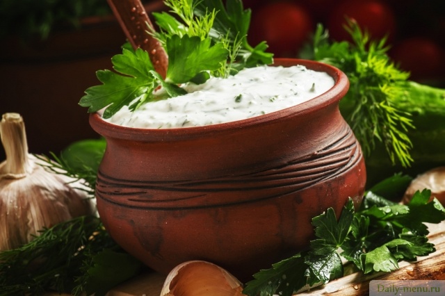 йогурт натуральный 3.2%, лук зеленый, кинза, мята свежая, масло оливковое, винный уксус 3%, соль поваренная пищевая