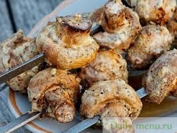 шампиньоны, кефир 1% жирности, сыр пармезан, сок лимонный, чеснок, масло оливковое, имбирь корень, соль поваренная пищевая, кориандр, паприка сушёная, молотая, перец душистый