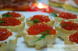 сыр almette сливочный, тарталетки, икра красная лососевая
