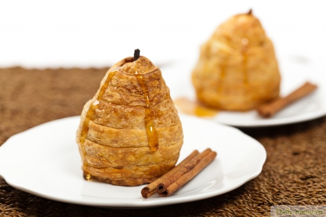 груша, слоеное тесто бездрожжевое, орех грецкий, клюква сушеная, горький шоколад, корица