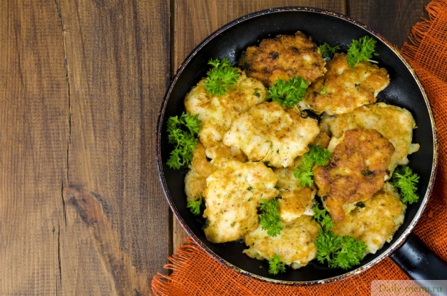 курица филе, без кожи, майонез , лук репчатый, яйцо куриное, масло оливковое, мука пшеничная , соль поваренная пищевая, перец черный молотый