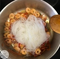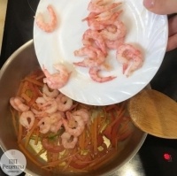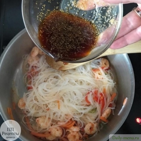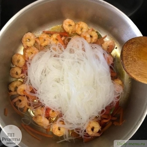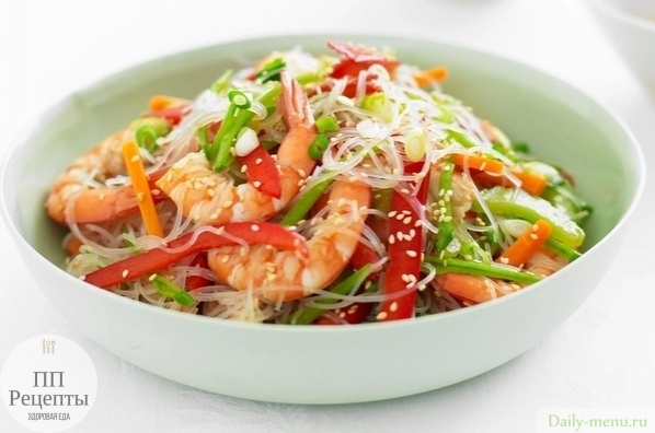 вода, креветки очищенные, лапша фунчоза, перец болгарский красный, морковь, огурец грунтовый, мед натуральный (мёд), соевый соус, сок лимонный, масло подсолнечное, чеснок, кунжут-семя