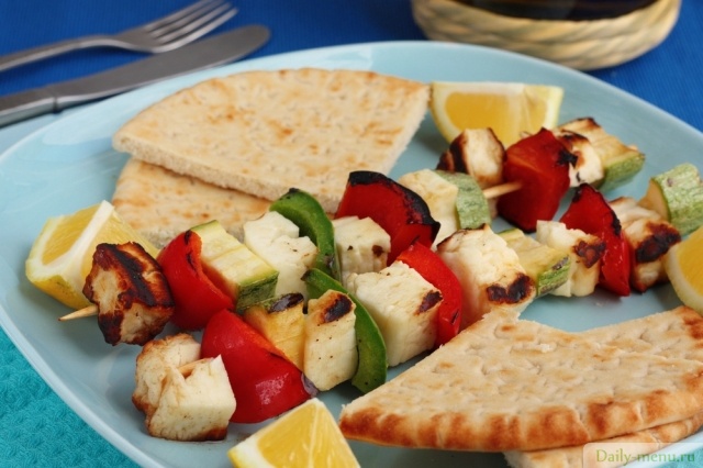 сыр халуми, кабачок, перец сладкий, помидоры, масло оливковое, винный уксус 3%, сок лимонный, чеснок, соль поваренная пищевая, травы итальянские, смесь, перец черный молотый