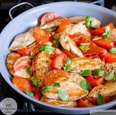 куриная грудка, без кожи, помидоры, масло подсолнечное, укроп и другие пряные травы, соль поваренная пищевая, орегано сушеный, чеснок