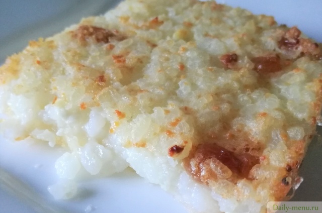 вода, рис круглозёрный , творог, 5 % , сметана 20,0% жирности, изюм, сахар-песок, яйцо куриное, сухарики из белого хлеба, масло топленое, ванилин