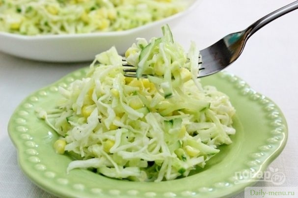 капуста белокочанная, кукуруза консервы, лук репчатый, сок лимонный, соль поваренная пищевая