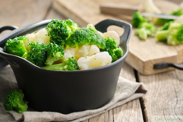 капуста цветная, брокколи, масло топленое, чеснок, соль поваренная пищевая