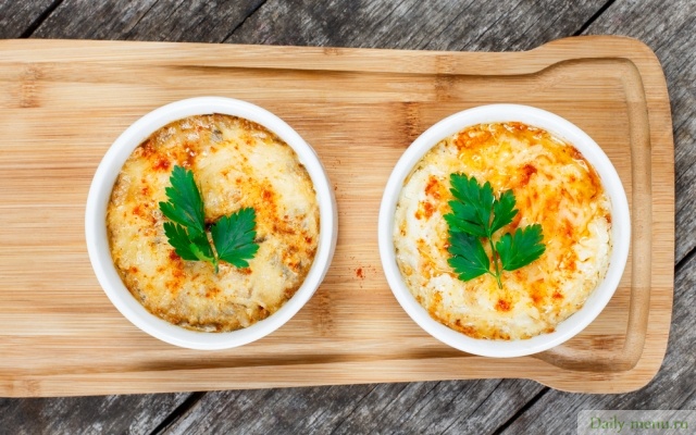 лосось атлантический (семга), сливки 30% жирности, сыр российский, лук репчатый, масло топленое, петрушка, соль поваренная пищевая, перец черный молотый