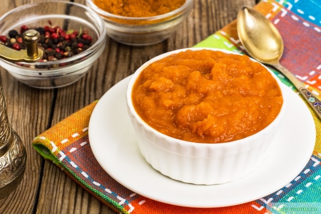 тыква, морковь, лук репчатый, томатная паста, масло оливковое, чеснок, соль поваренная пищевая