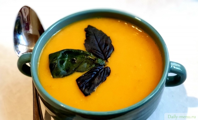 вода, тыква, сливки, 10,0% жирности, морковь, лук репчатый, помидоры, перец болгарский красный, соль поваренная пищевая, карри, имбирь порошок