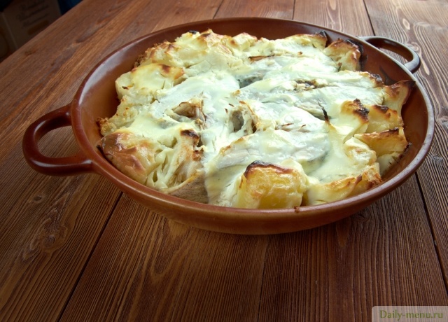 минтай, картофель, сметана 20,0% жирности, лук репчатый, масло оливковое, соль поваренная пищевая, перец черный молотый
