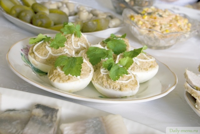 Фаршированные яйца с печенью трески