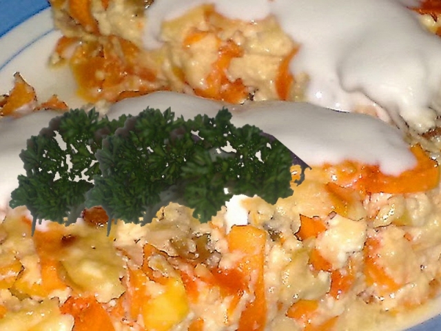 тыква, курица филе, без кожи, морковь, йогурт 1,5% , лук репчатый, укроп и другие пряные травы, масло оливковое, соль поваренная пищевая, перец красный молотый , перец черный молотый