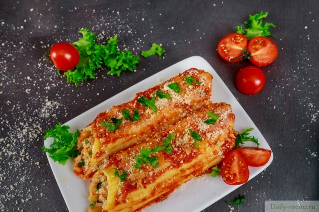 сок томатный, макароны из муки в/с, перец болгарский красный, шампиньоны, лук репчатый, морковь, масло оливковое, соус томатный острый, петрушка, чеснок, соль поваренная пищевая, смесь перцев