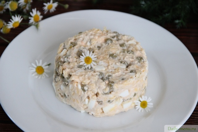 горбуша натуральная консервы, горошек зеленый. консервы, яйцо куриное, майонез , огурец соленый