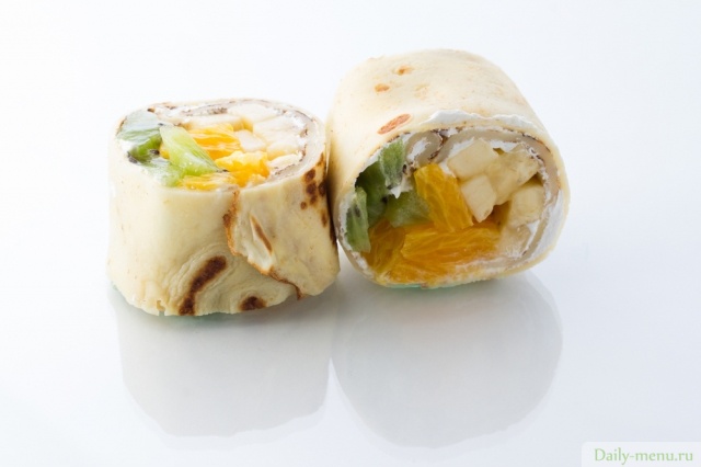 сыр almette сливочный, апельсин, лаваш армянский, тонкий, банан, киви, ванильный сахар