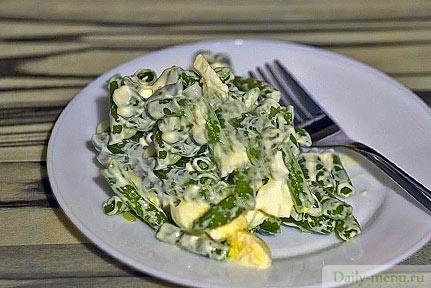 фасоль стручковая, яйцо куриное, йогурт натуральный 2%, чеснок, соль поваренная пищевая