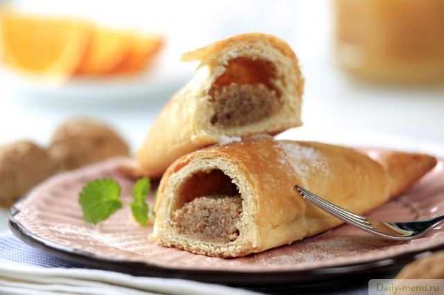 мука пшеничная , масло сливочное 72%, орех грецкий, сметана 20,0% жирности, сахар-песок, мед натуральный (мёд), пищевая сода, корица