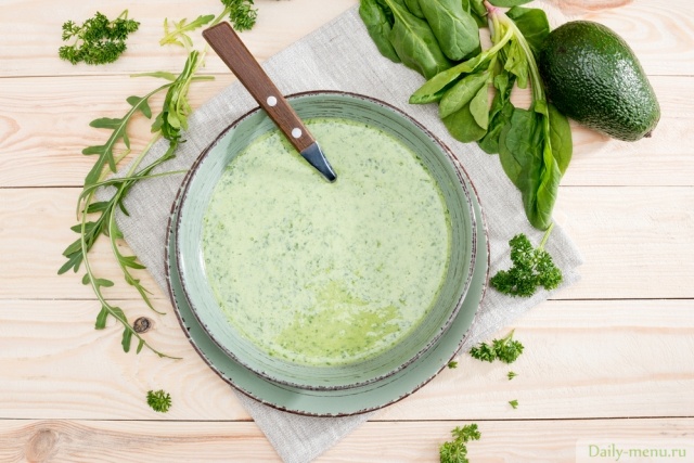 йогурт 3,2% , огурец грунтовый, авокадо, масло оливковое, петрушка, укроп и другие пряные травы, чеснок, соль поваренная пищевая