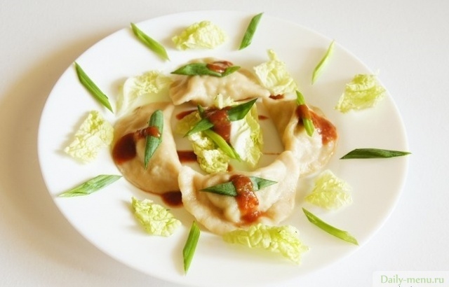 мука пшеничная , свинина вырезка, капуста пекинская, вода, лук зеленый, петрушка, соевый соус, рисовый уксус, масло оливковое, чеснок, имбирь корень, соль поваренная пищевая, перец красный жгучий