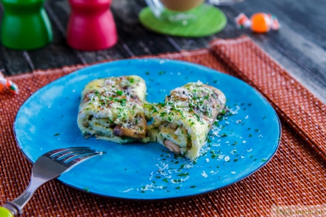 яйцо куриное, шампиньоны, сметана 18% жирности, сыр плавленый, лук репчатый, масло оливковое, укроп и другие пряные травы, чеснок