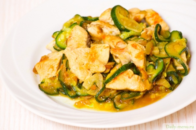 кабачок, курица филе, без кожи, лук репчатый, масло оливковое, соевый соус, чеснок, перец черный молотый