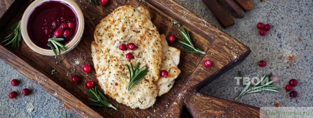 филе индейки, масло оливковое, чеснок, брусника, розмарин, сахар-песок, соль поваренная пищевая, смесь перцев