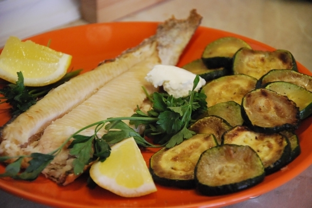 форель речная, лимон, петрушка, укроп и другие пряные травы