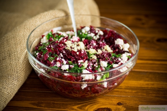 свекла, творог 8%, укроп и другие пряные травы, масло оливковое, бальзамический уксус, сахар-песок, соль поваренная пищевая