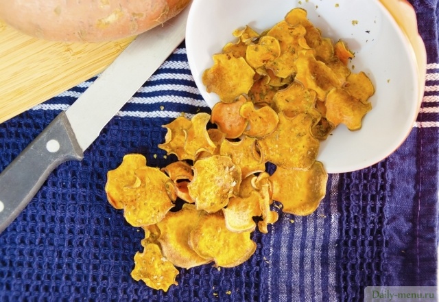 батат, масло оливковое, паприка сушёная, молотая, чеснок сушеный, соль поваренная пищевая