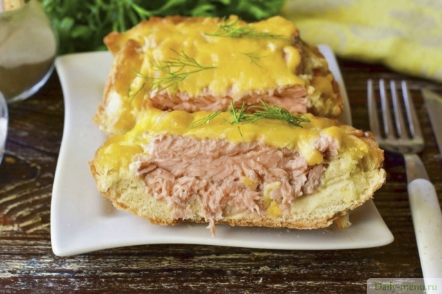 горбуша, батон нарезной, сыр голландский, сметана 20,0% жирности, масло оливковое, соль поваренная пищевая, смесь перцев