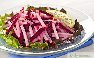 редька красная, масло подсолнечное, сок лимонный, соль поваренная пищевая