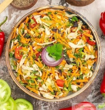 капуста квашенная, перец болгарский красный, морковь, лук репчатый, масло оливковое, соль поваренная пищевая, перец черный молотый