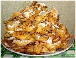 мука пшеничная , яйцо куриное, сметана 20,0% жирности, молоко 2,5% , масло подсолнечное, коньяк, сахар-песок, сахарная пудра, ванилин, пищевая сода