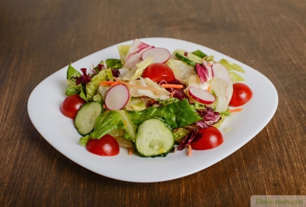 редис, огурец грунтовый, помидоры, масло льняное, петрушка, лук зеленый, укроп обыкновенный, соль поваренная пищевая