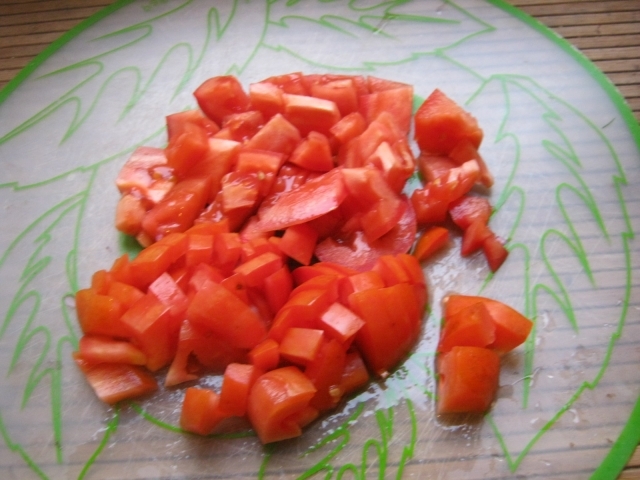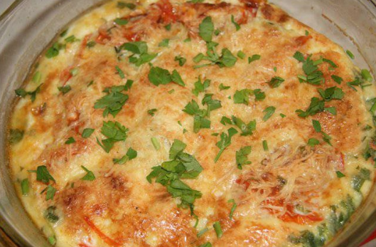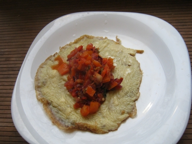 яйцо куриное, перец красный сладкий, помидоры, лук репчатый, пастрома из курицы, укроп и другие пряные травы, масло подсолнечное, соль поваренная пищевая, перец черный молотый
