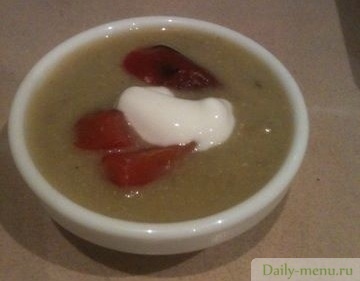 суп-пюре с брокколи, кабачками и зеленым горошком.
