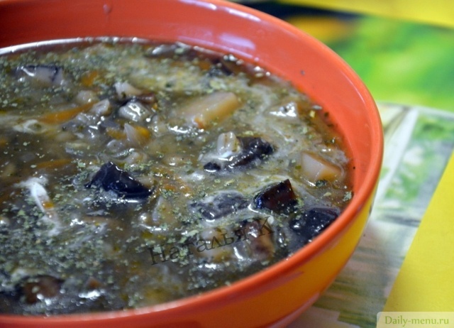 вода, картофель, подосиновики, лук репчатый, морковь, петрушка, крупа перловая, белый гриб, масло подсолнечное
