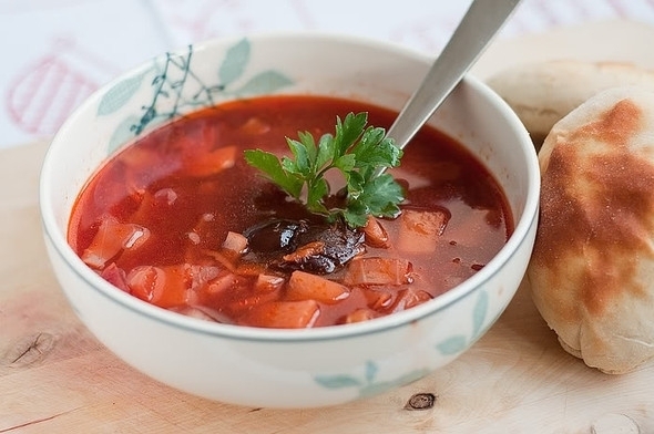 вода, капуста белокочанная, фасоль в томате "бобовая страна", картофель, морковь, свекла, томатная паста, чеснок, укроп и другие пряные травы