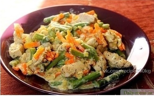 Курица с рисом и овощами в сливочном соусе