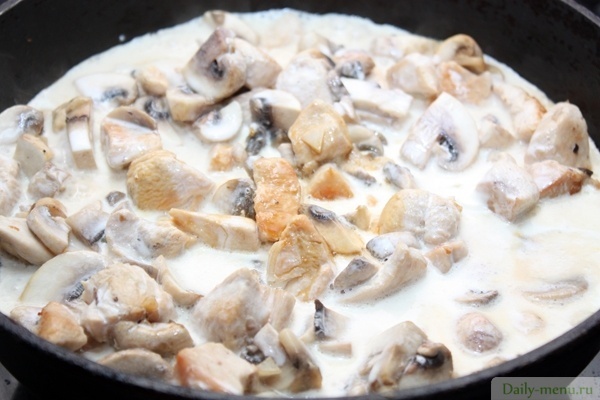курица (филе) вареная, сливки, 10,0% жирности, шампиньоны